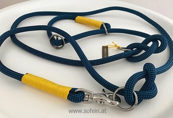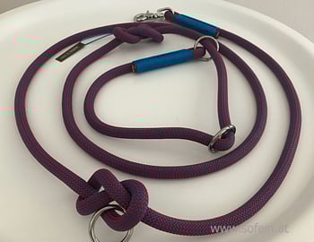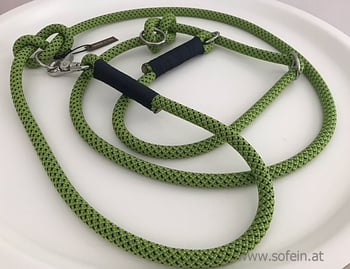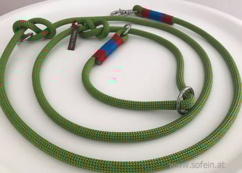 Gefertigt werden sie aus zum Klettern zugelassenen Seilen und sind somit extrem robust und reißfest. Optisch bestechen sie durch ihre Schlichtheit und liegen wunderbar in der Hand. Die Halsweite ist individuell verstellbar und ein Stopper sichert, dass der Hund nicht gewürgt werden kann. Die restlichen Ringe können ebenfalls ganz individuell eingestellt werden, passend für die perfekte Wunschlänge!